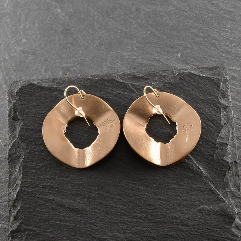 - Matières : Ronds en bronze doré ou bronze blanc. Crochets en gold-filled pour le bronze doré, en argent massif pour le bronze blanc.