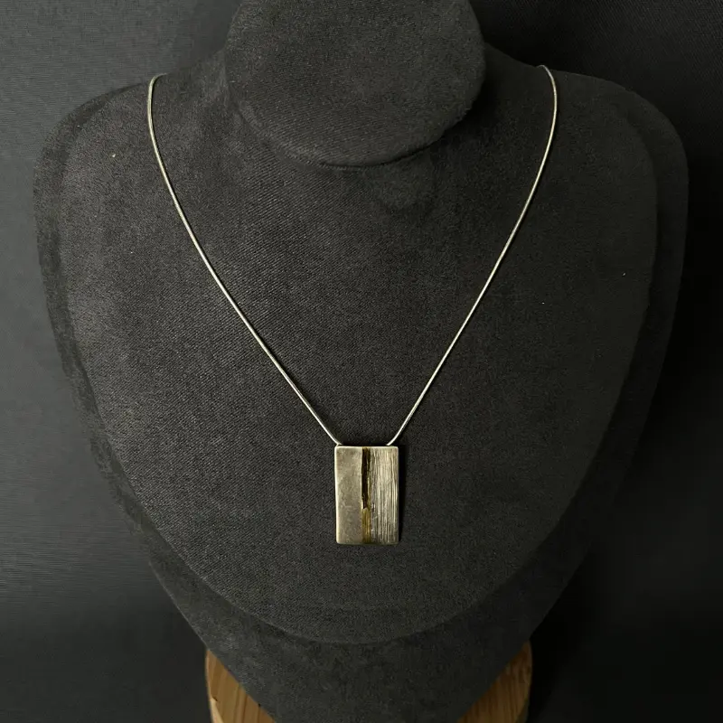 Collier rectangulaire en argent et or – Éclat brut et ligne contemporaine